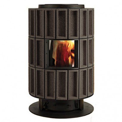 Герметичная отопительная печь с подключением воздуха с улицы. Облицовка печи из аккумулирующего материала для увеличения теплоотдачи. Есть возможность подогрева блюд на верхней плите. Удобное управление работой топки (1 ручка регулирует подачу всех воздушных потоков).