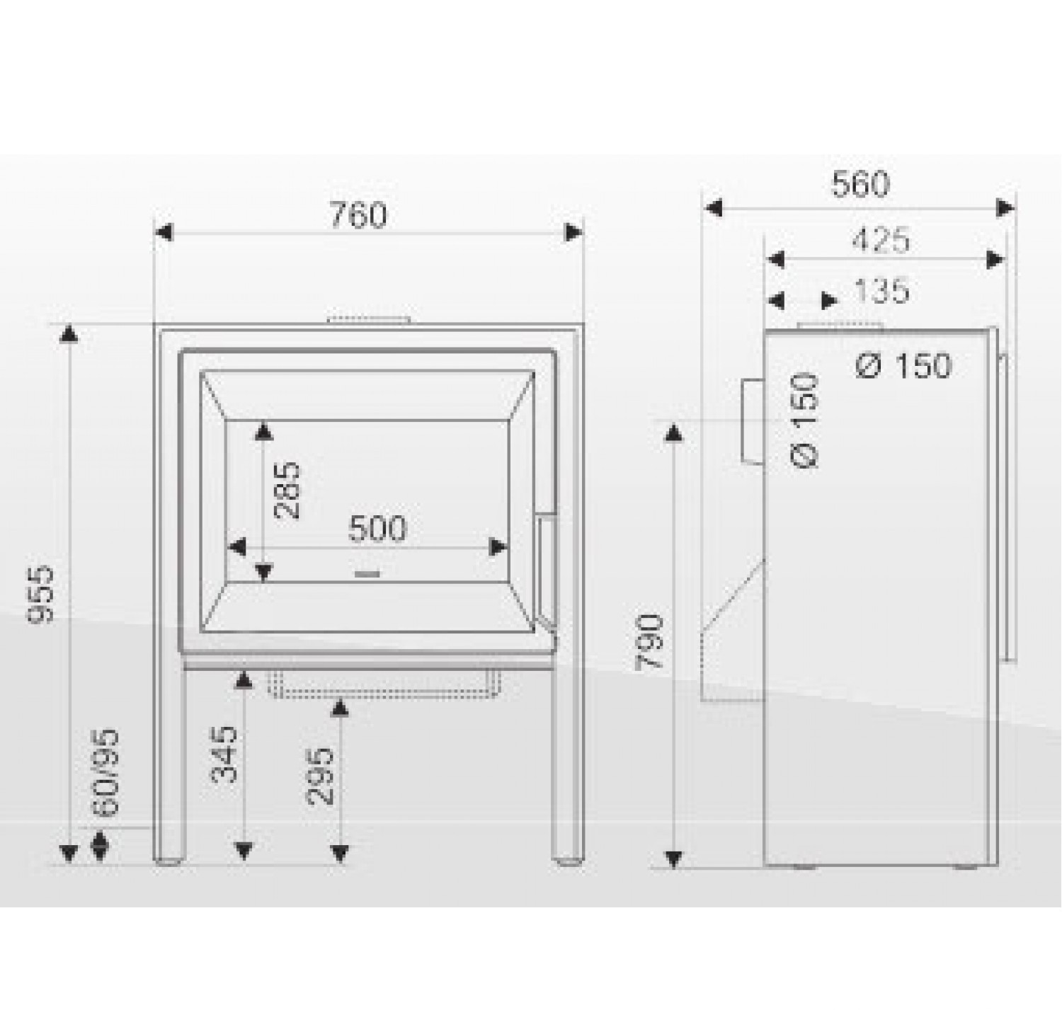 Печь дровяная черного цвета, изготовлена из стали, дверца - из чугуна. Использованы технологии SC2 и РВ50.