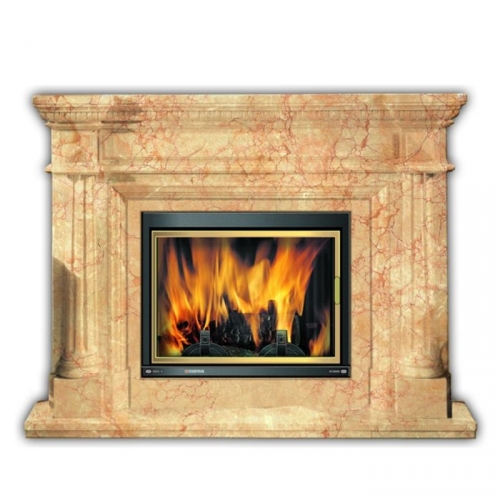Мраморный пристенный камин из мрамора Rosa Crema, адаптированный под топку Univers II (Supra). Все камины изготовлены из натурального камня и мрамора, поэтому цвет и прожилки - уникальны!