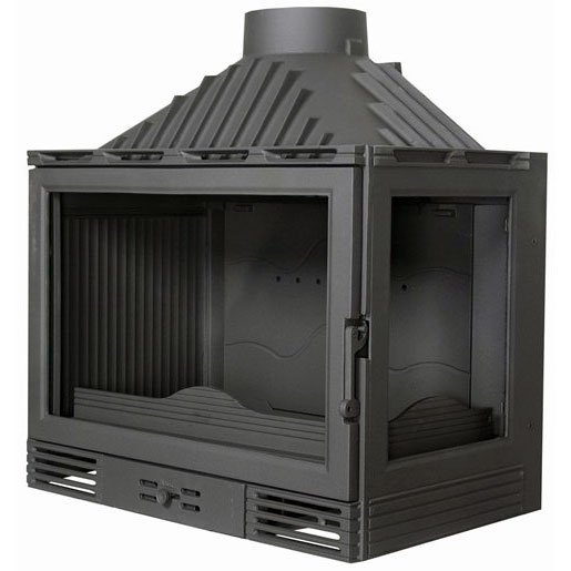 Чугунная каминная топка с заслонкой. Стекло справа.