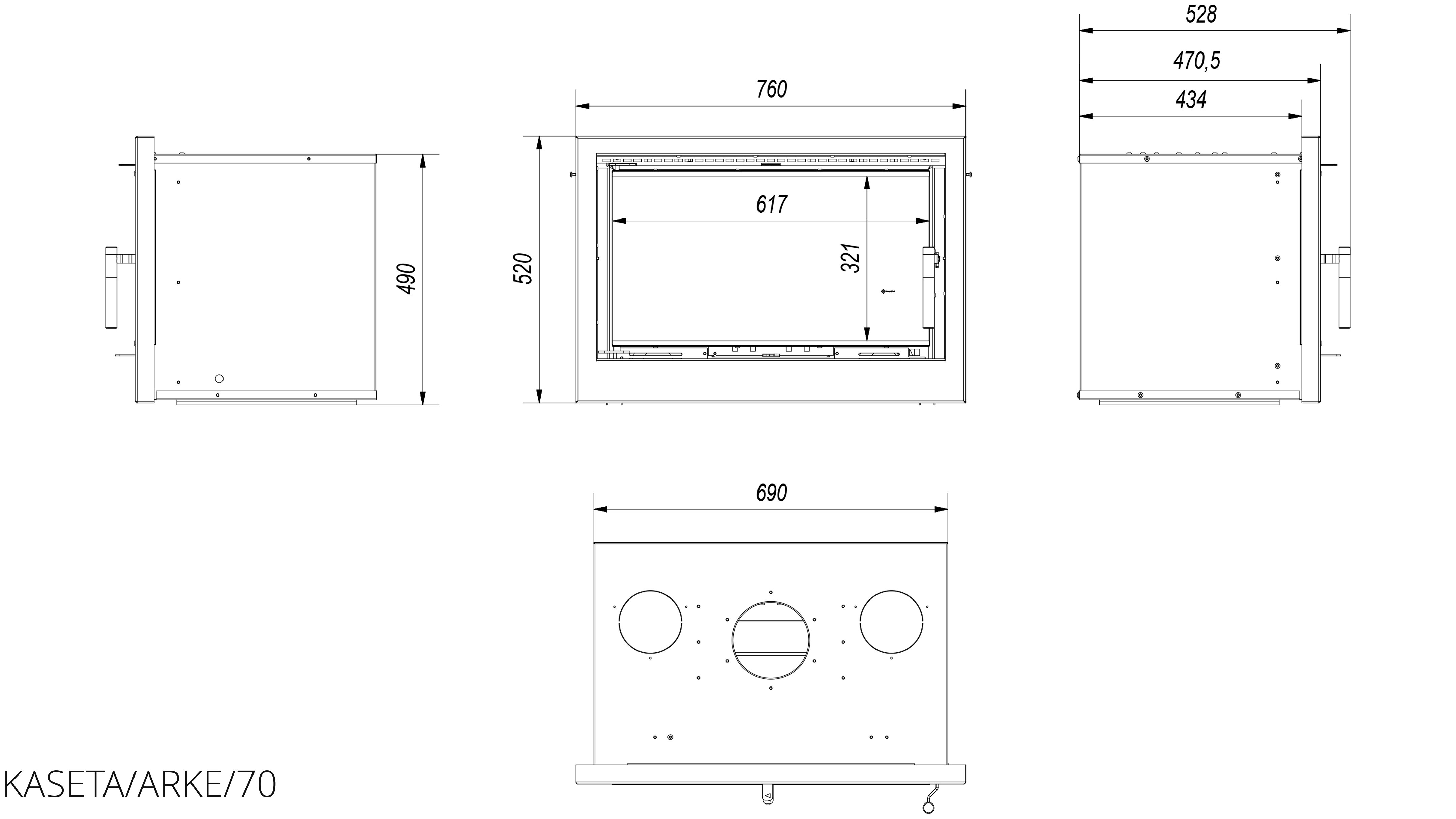 Каминная топка Kratki ARKE/70 (кассета) является разновидностью закрытой камеры сгорания, монтированной на существующие уже открыты камеры сгорания или в индивидуальную застройку. Ее простой и элегантный вид идут в паре с очень хорошими тепловыми параметрами. Она имеет систему чистого стекла, которая вместе с отдельным контейнером и накопленной в нем золой помогает держать устройство в чистоте.