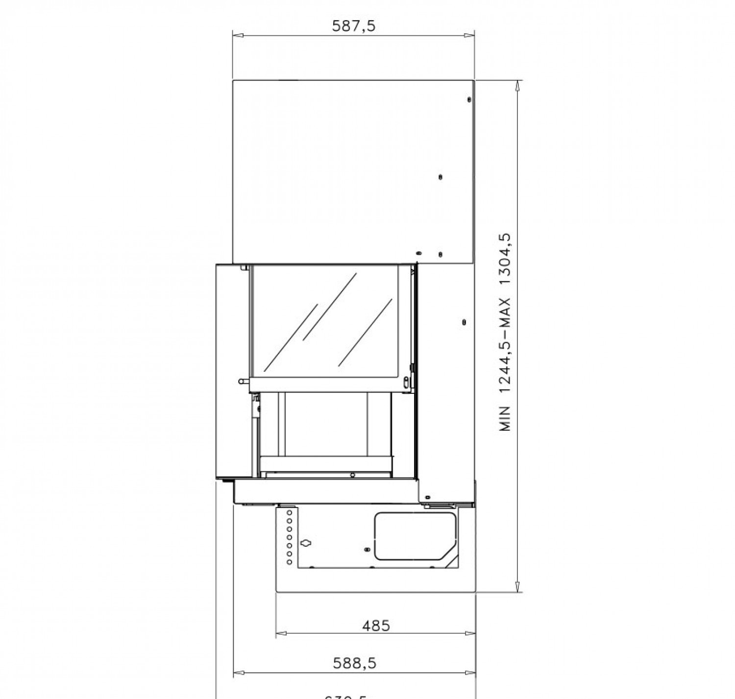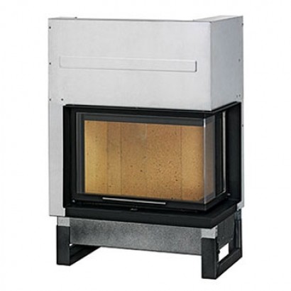 Стальная каминная топка с боковым стеклом. Дверца с подъемом вверх.