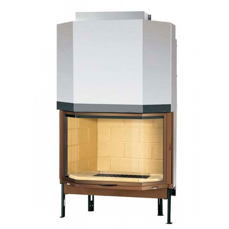 Призматическая топка, профиль стекла "Комфорт". Цвет - бронзовый. Внутренняя отделка - огнеупорный кирпич.