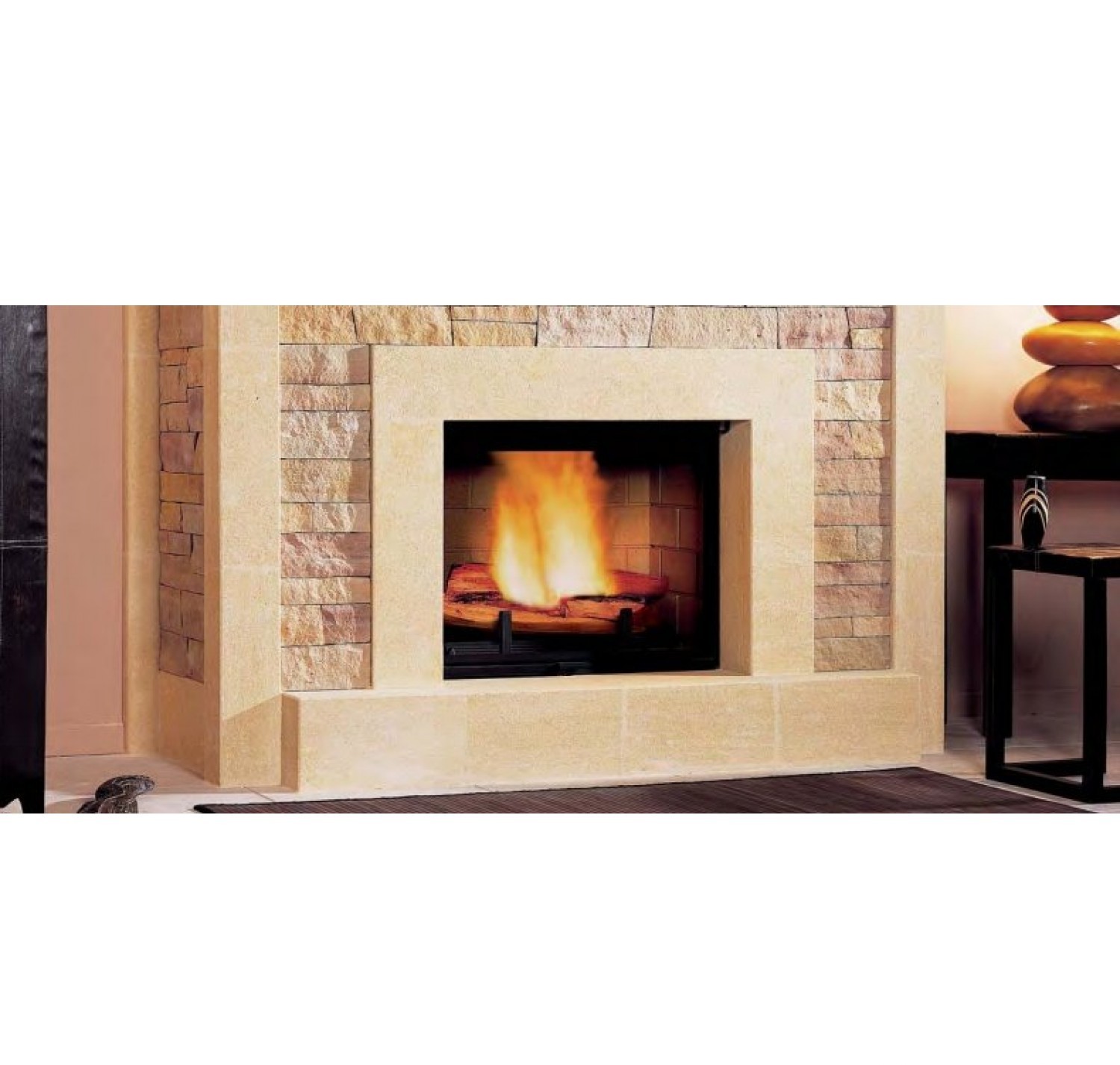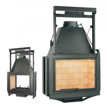 Стенки очага защищены шамотом. Дверь с прямым керамическим стеклом, устойчивым к высоким температурам.