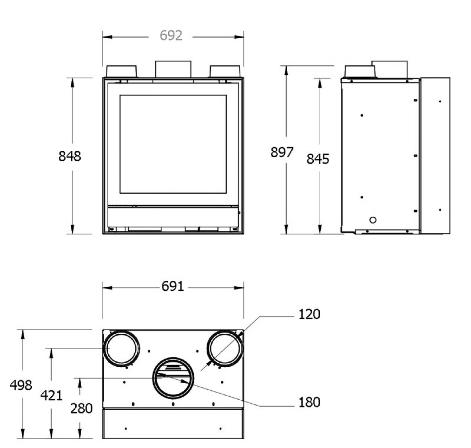 Каминная вставка (инсерт) IQH33 (Nestor Martin). Без рамки.