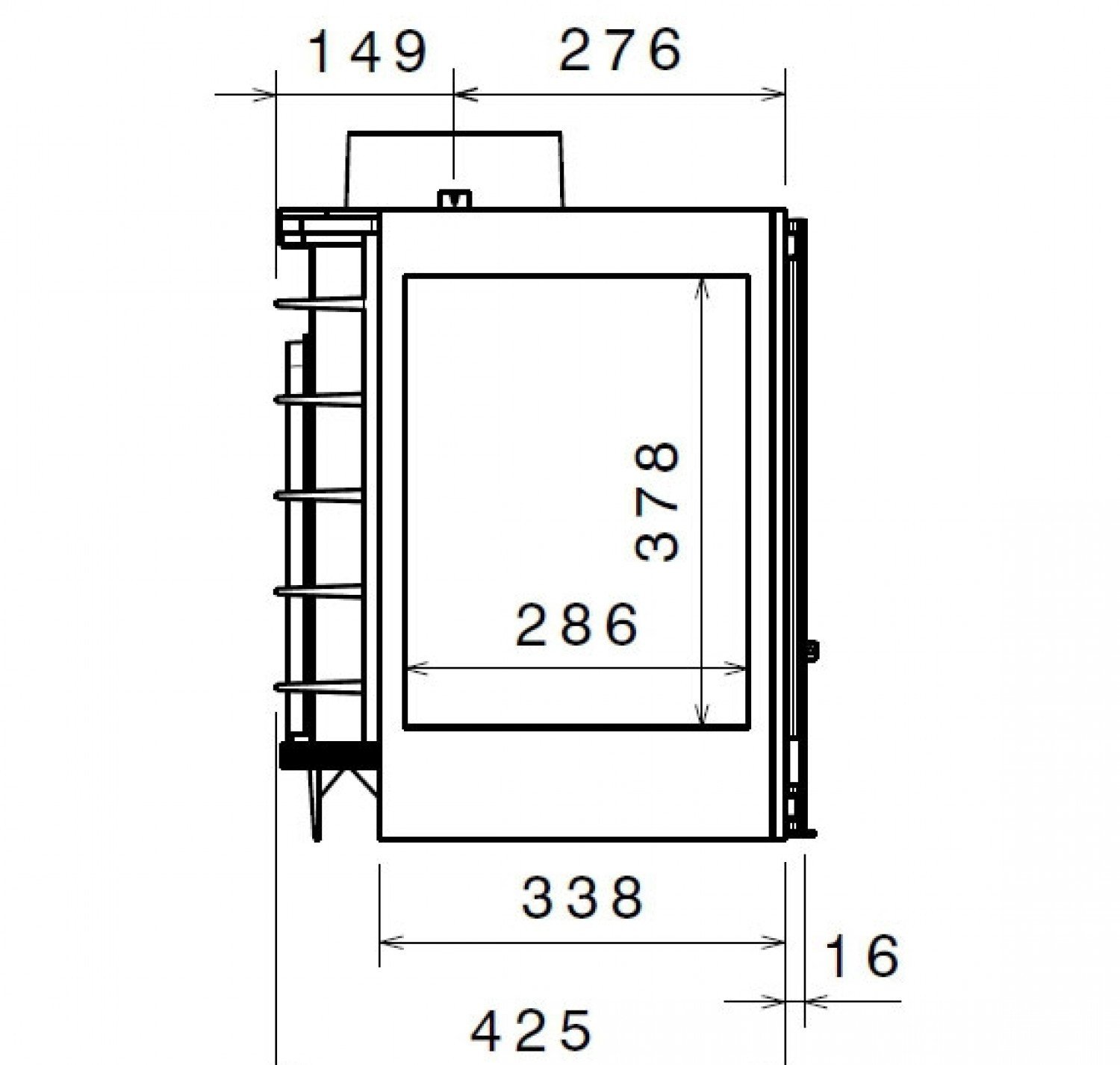 Каминная топка без дымосборника. С правым и левым боковыми стеклами.