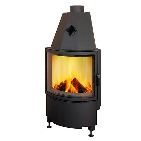 Двухкорпусная топка с режимом длительного горения, с большим обзором огня, чугунная колосниковая решётка, система очистки стекла нагретым воздухом, внутренняя отделка - шамот, термодатчик на автоматической заслонке, топливо: дрова, брикеты, регулировка интенсивности горения, возможность подключения подачи воздуха на горение, система дожига дымовых газов, регулируемые по высоте ножки, 3 типа отделки рамки: золото, хром, черный.