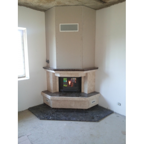 Нашими специалистами был произведен монтаж каминной топки Invicta Призматик Контргруз 700 и облицовки, сделанной на заказ.