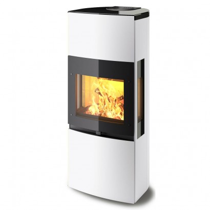 Чугунная печь K1130, белый глянец + бок.стекла + декор стекла (Keddy)
