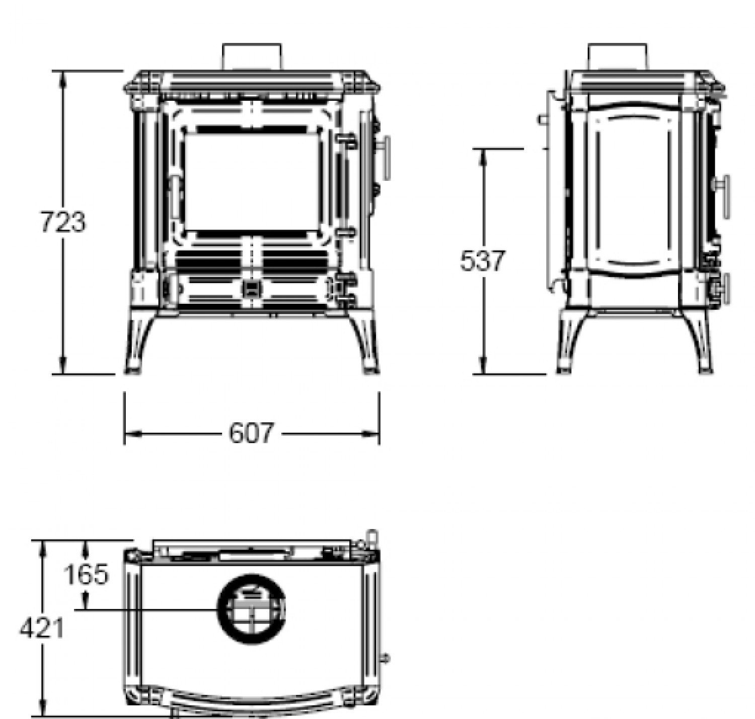 - Передняя и боковая дверцы загрузки дров