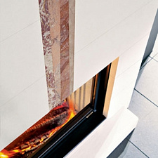 Выбирая материал для облицовки камина, следует уделить внимание нескольким факторам: 1. Во-первых, перед тем как приобретать агрегат, сразу нужно определиться с топочным материалом. Если она выполнена из дерева, то достаточно будет того, чтобы облицовка выдерживала 900°. Если будет использоваться твердое топливо, то нужно отдавать предпочтение материалу, выдерживающему температуру до 1200°. 2. Также следует определиться с местом расположения. Если у вас камин декоративный, который устанавливается в хорошо отапливаемом помещении, то с материалом можно не заморачиваться, т.к. подойдет любой. Если вы собираетесь установить камин, например, на летней веранде, то здесь следует выбирать такую облицовку, которая будет устойчива к морозам. 3. Еще один важный критерий выбора — это влагоустойчивость. При необогреваемом помещении, особенно важно, чтобы этот показатель был высоким. Если не соблюдать этот критерий, то очень скоро облицовка начнет отслаиваться и трескаться. 4. Также на выбор облицовочного материала оказывает влияние масса конструкции, которая в свою очередь зависит от места размещения агрегата. Если камин будет располагаться в частном доме на первом этаже, то на помощь может прийти дополнительный фундамент. В случае, если вы планируете устанавливать его на втором этаж, то здесь вес играет очень большую роль, поскольку перекрытие может попросту не выдержать большого веса каминной установки.