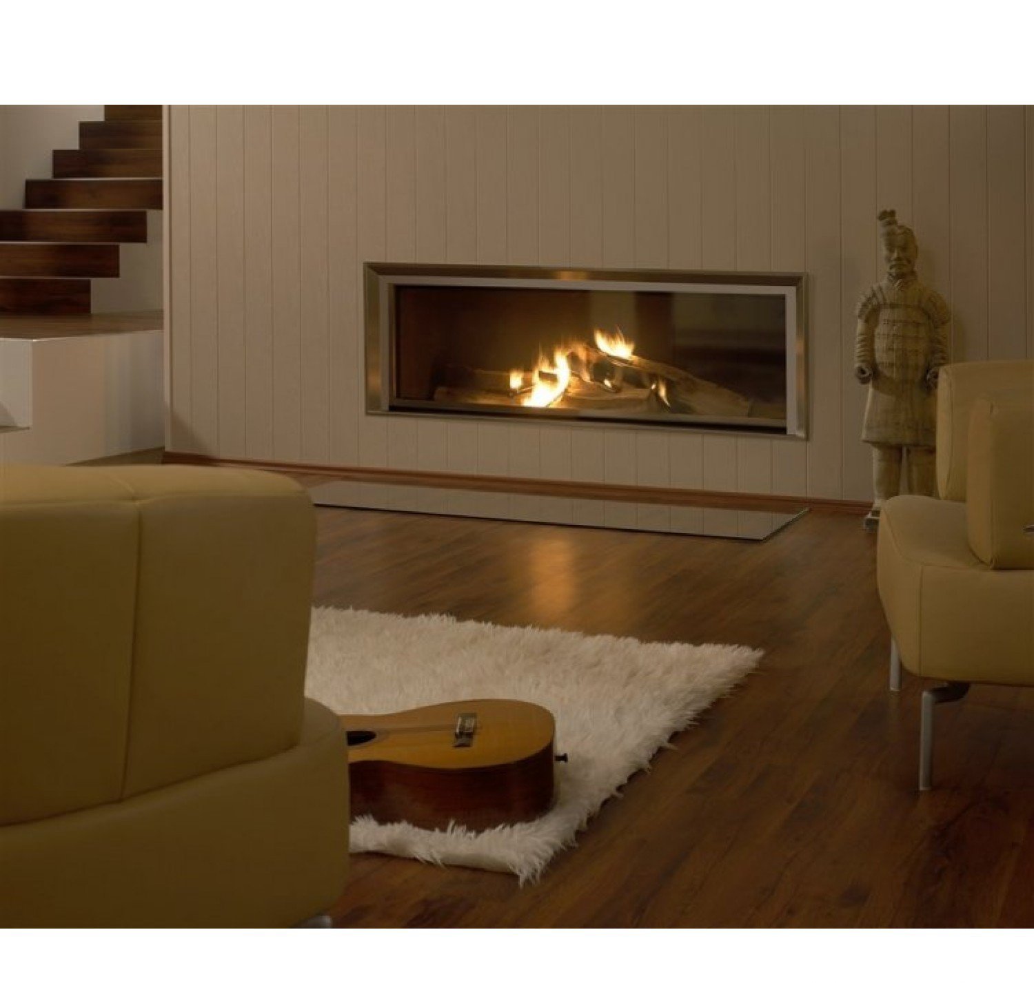 Каминная топка с прямым стеклом. Топочная камера футерована шамотом. Подъёмный механизм двери (система Easy-Lift). Ширина дверки 1210 мм. Высота дверки 538 мм. Возможно подключение воздуха извне.