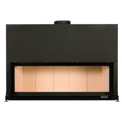 Каминная топка с прямым стеклом. Топочная камера футерована шамотом. Подъёмный механизм двери (система Easy-Lift). Ширина дверки 1660 мм. Высота дверки 538 мм. Возможно подключение воздуха извне.