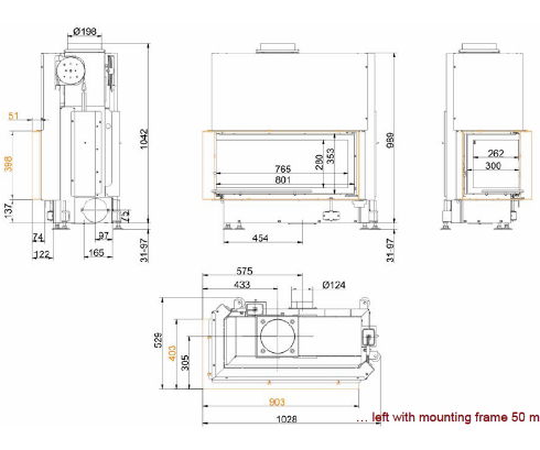 Топка Architektur-Kamin Eck 38/86/36 с подъмом, с одним стеклом.