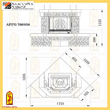 Угловая каминная топка с Г-образным стеклом. Боковое стекло слева. Топочная камера футерована шамотом. Подъёмный механизм двери (система Easy-Lift). Возможно подключение воздуха извне.