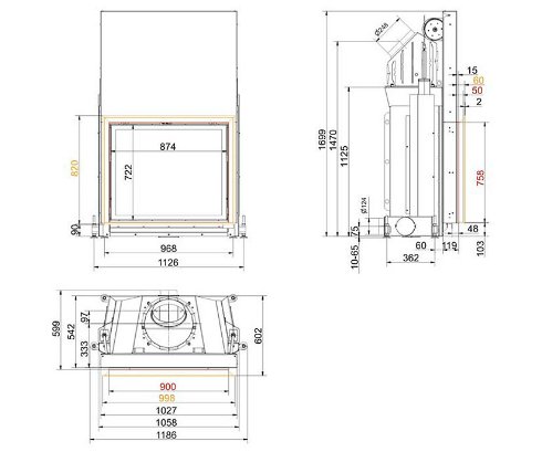 Топка SK 75/90 с подъёмом с одним прямым стеклом.