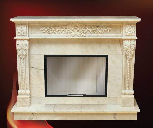 Такой камин идеально впишется в любой интерьер. Данная модель выполнена из натурального камня. Камин декорирован резными элементами на цветочную тему.