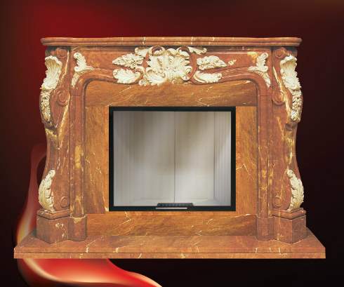 Изящный камин из мрамора. Особую красоту камину придают резные цветочные элементы из светлого камня.