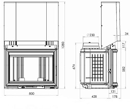 Цена указана за камин в стандартном исполнении (см. чертеж) из указанных материалов с открытым очагом.