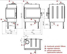 - Диаметр дымохода, (мм) 150 мм.