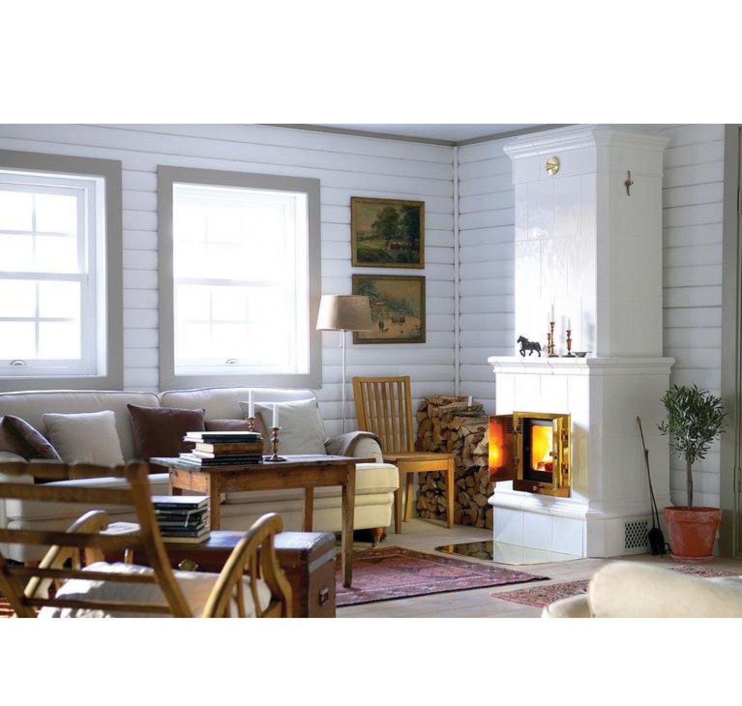 Все модели плиточных и оштукатуренных печей Contura оборудованы системой длинных каналов дымохода, выполненных из теплонакопительного материала - оливина, по которым горячий воздух несколько раз проходит вверх и вниз. Во время горения тепло эффективно аккумулируется массивом оливина, а после угасания огня печь будет отдавать его в течение 24 часов.