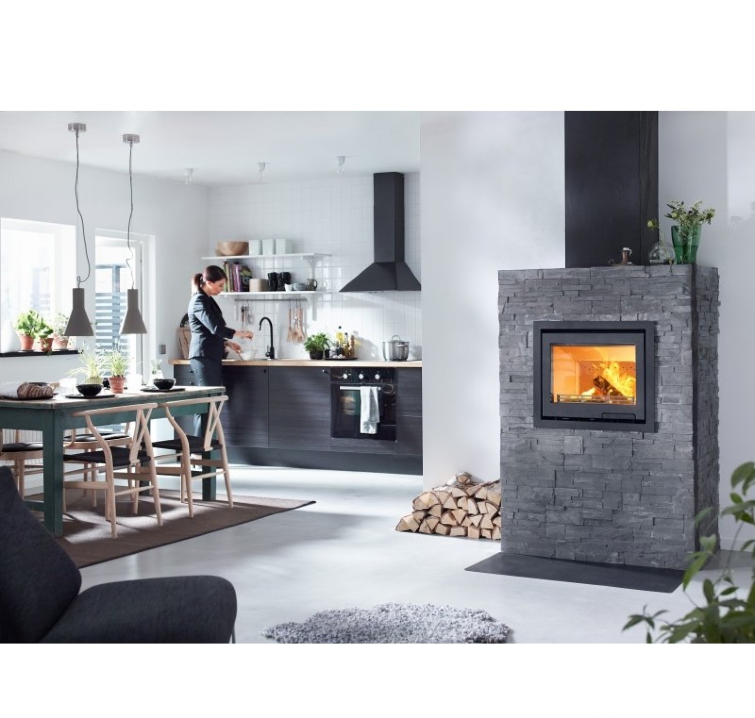 Высокоэффективная топка Contura i6 является идеальным выбором для тех, кто обладает собственными идеями и хочет создать индивидуальный и неповторимый камин. Корпус топки изготовлен из высококачественной стали,а дверка и днище отлиты из чугуна . Топочная камера облицована плитами из вермикулита, применение которых позволяет достичь идеальных условий для сгорания дров, повышая тем самым КПД. Большое стекло позволяет в полной мере насладиться игрой живого пламени.