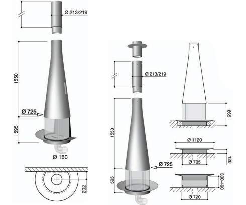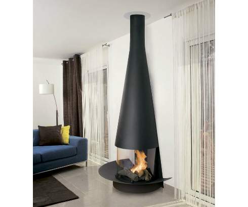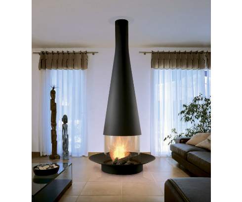 Основание очага может располагаться на двух разных высотах по отношению к полу, а также может быть приподнято на специальной стальной подставке (дополнительная опция). Застекленные дверцы выполняют функцию искрогасителей.