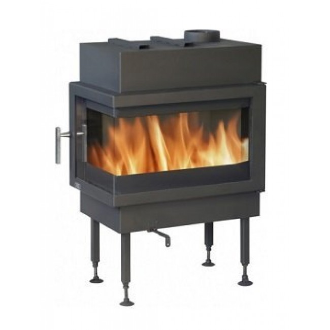 Шиберная заслонка перекрывает сечение дымохода. Так регулируется тяга в камине. Откройте шибер и вы увеличите тягу. Закройте и уменьшите тягу. В этой топке шиберная заслонка не встроена. Ее нужно купить в составе дымохода.