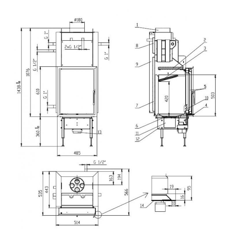 • Каминная топка изготовлена из жаропрочной стали высокого качества.