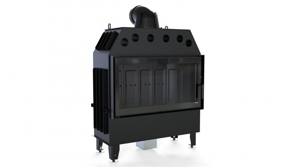 Изготовлена из стали с порошковым покрытием и имеет эффективность нагрева 80,1%. Устройство с центральной подачей воздуха снаружи и возможностью ее регулировки. Специальная конструкция на трубе для подачи воздуха в топку, дает возможность изменить направление подачи воздуха на боковое. Плотно размещенные радиаторы способствуют передачи больше тепла окружающей среде, а воздуховоды повышают эффективность камина. Модель оборудована жаростойким стеклом, что выдерживает температуру до 800 °С.