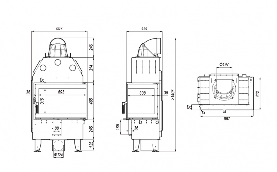 - Габаритные размеры ШxГxВ, (мм): 667x412x1237