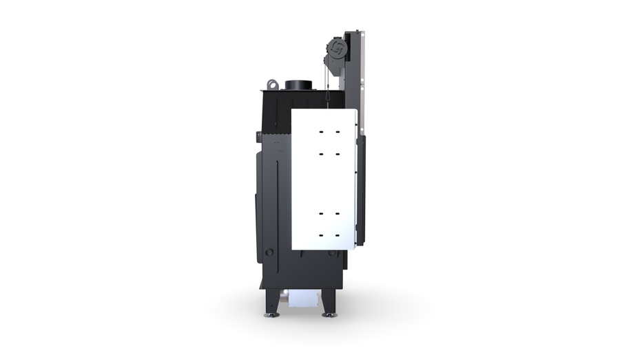 Несмотря на небольшие размеры, топка имеет легкий вертикальный подъем дверцы, система «Чистое стекло» не допустит налипание частиц сажи на стекло, вторичный дожег дымовых газов позволит эффективно и экономично использовать дрова, возможность подвода воздуха на горение с улицы стабилизирует подачу. На дверце установлено жаростойкое стекло с трафаретной печатью и логотипом производителя, она имеет боковое открытие для технического обслуживания топки.
