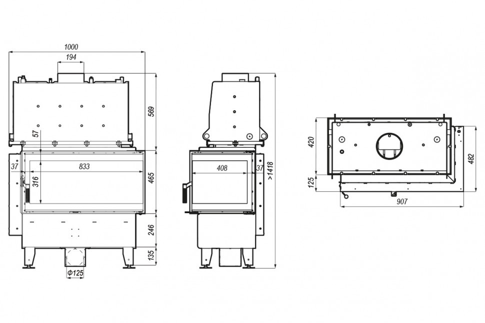 Топка дополняется стальной декоративной рамкой, которая приобретается отдельно. Дополнительная опция: черная ручка для дверей.