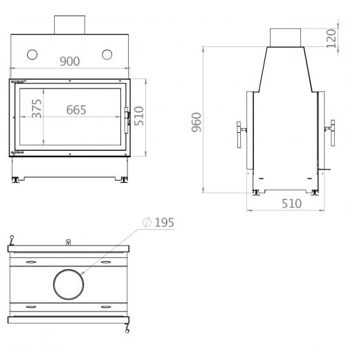 Дровяная каминная топка Echa-Tech Double 90x51/V (туннель, футеровка вермикулит) - это оригинальная модель, которая может располагаться между комнатами, так как имеет тоннельное остекление. Модель выполнена в стальном корпусе и футерована вермикулитом. Для устойчивости предусмотрены регулируемые ножки.