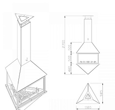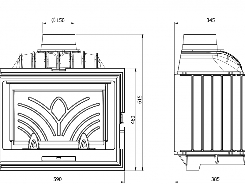 - Выход дымохода диаметром 150 мм, что даёт возможность монтажа топки в зауженный дымоход.