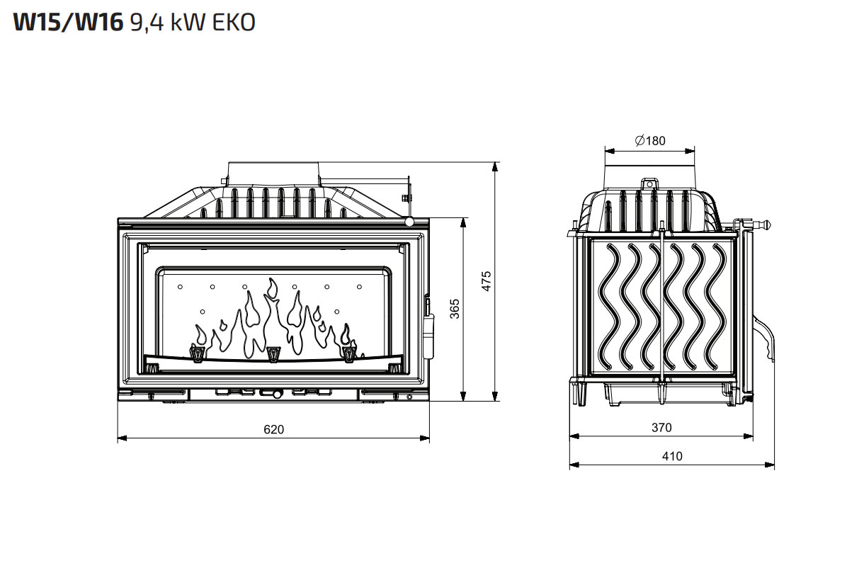 Каминная топка W15 STANDARD 9.4кВт EKO с отличными характеристиками и великолепной ценой, используется для отопления помещений, а также как предмет интерьера. Выполнена из чугуна класса EN-GJL- 200, представляет собой качественный дизайнерский отопительный прибор.