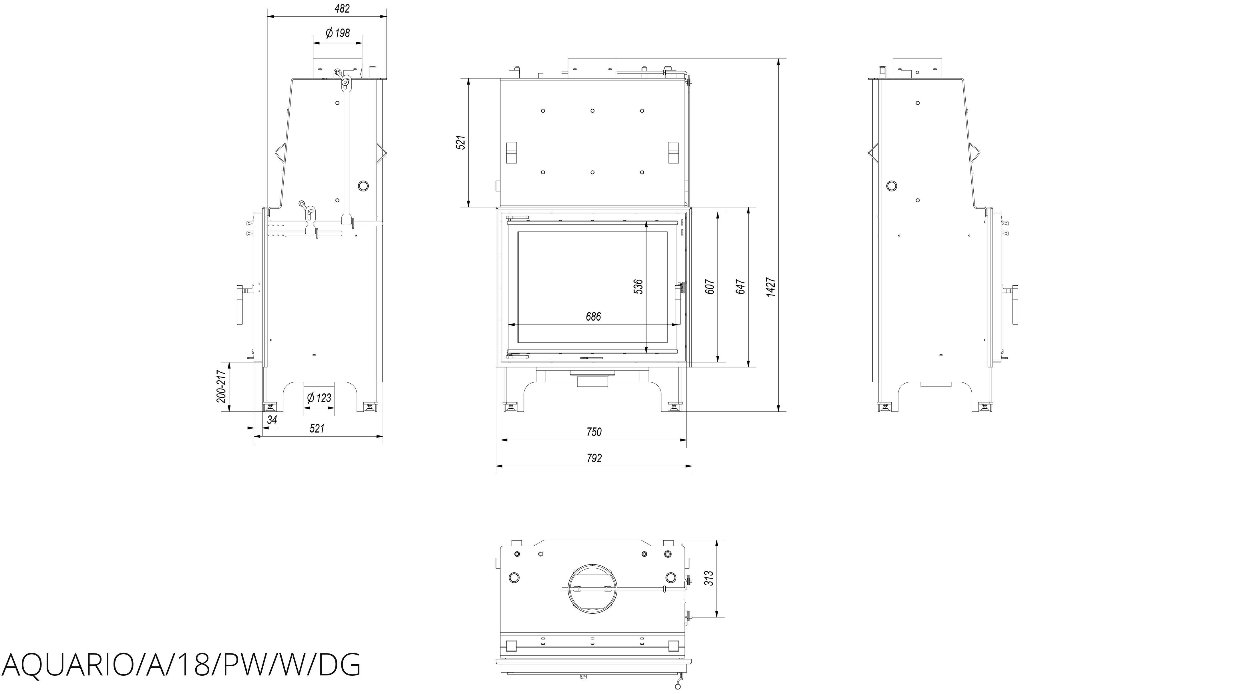 Каминная топка Kratki Aquario/A/18/PW/W/DG
