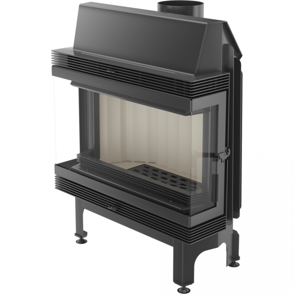 • Каминная топка с двумя стеклянными панелями, сопоставленными друг напротив друга под прямым углом (стеклянные панели соединены без рамы).