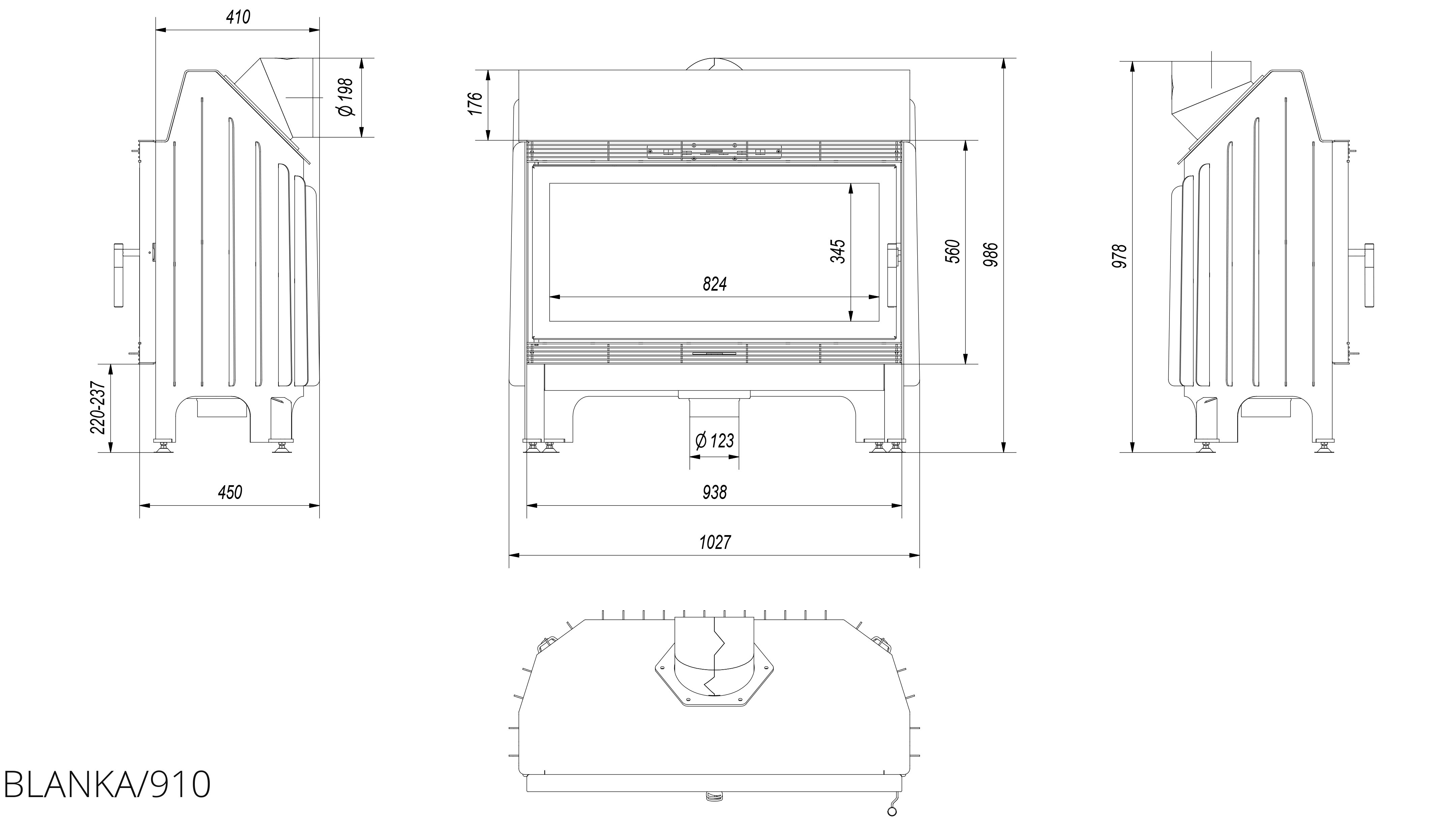 Blanka/910 (керамическая футеровка) – стальная топка небольшой мощности размерами от польского производителя Kratki. Корпус топки выполнен из 4-х миллиметровой котельной стали, камера сгорания футеруется изнутри специальной керамикой Acumotte.