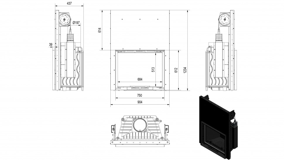 • Имеет встроенную шиберную заслонку, дефлектор, а также ящик для золы.