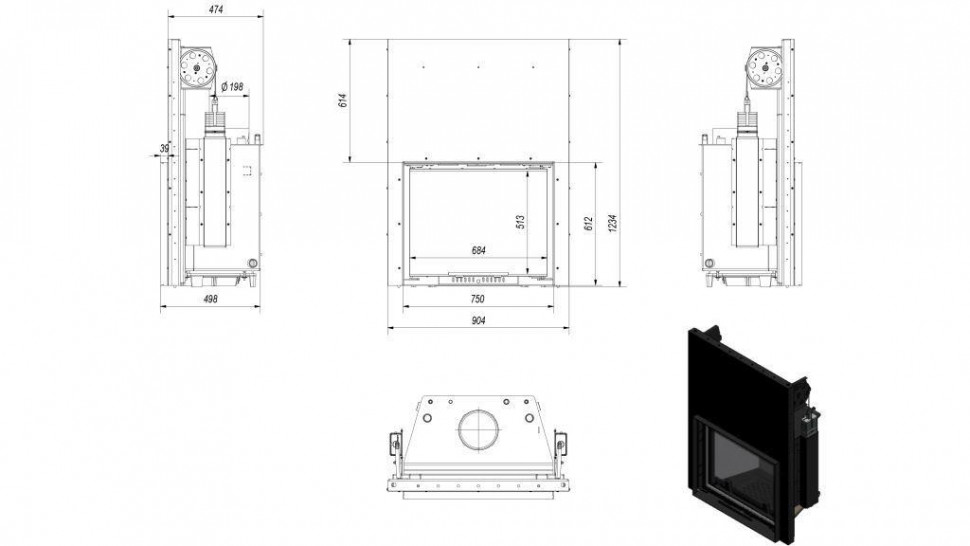 - Дверь каминной топки декорирована стеклом, которое выдерживает температуру до 750 градусов.