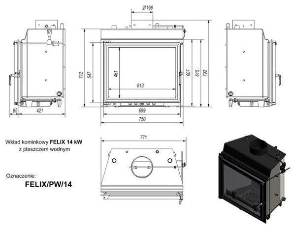 Встраиваемая каминная топка Kratki Felix/PW/14/W средней производительности с широким плоским стеклом и встроенным теплообменником (с водяным контуром). Имеет множество стандартных «функций», а кроме этого большой выбор дополнительных опций.