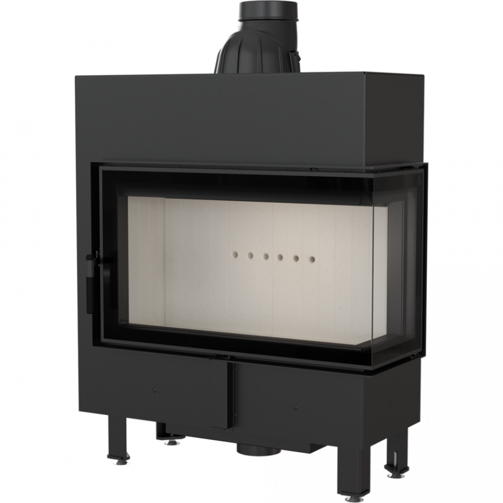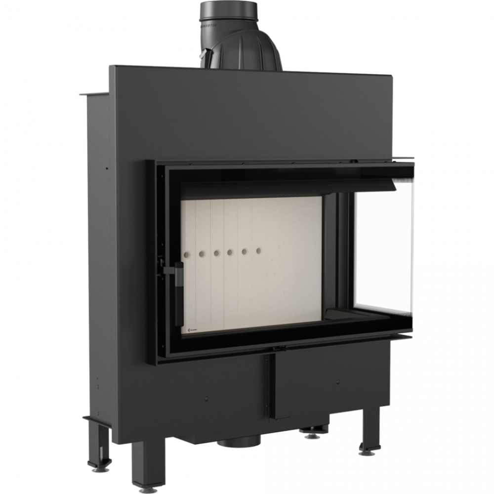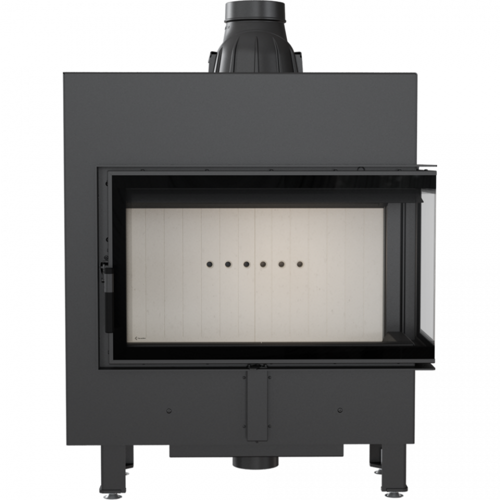 - Модель оснащена подвижным дымоходным отверстием, так что во время монтажа нет необходимости покупать дополнительные колена. Можно легко подобрать угол подключения топки к каминной инсталляции.