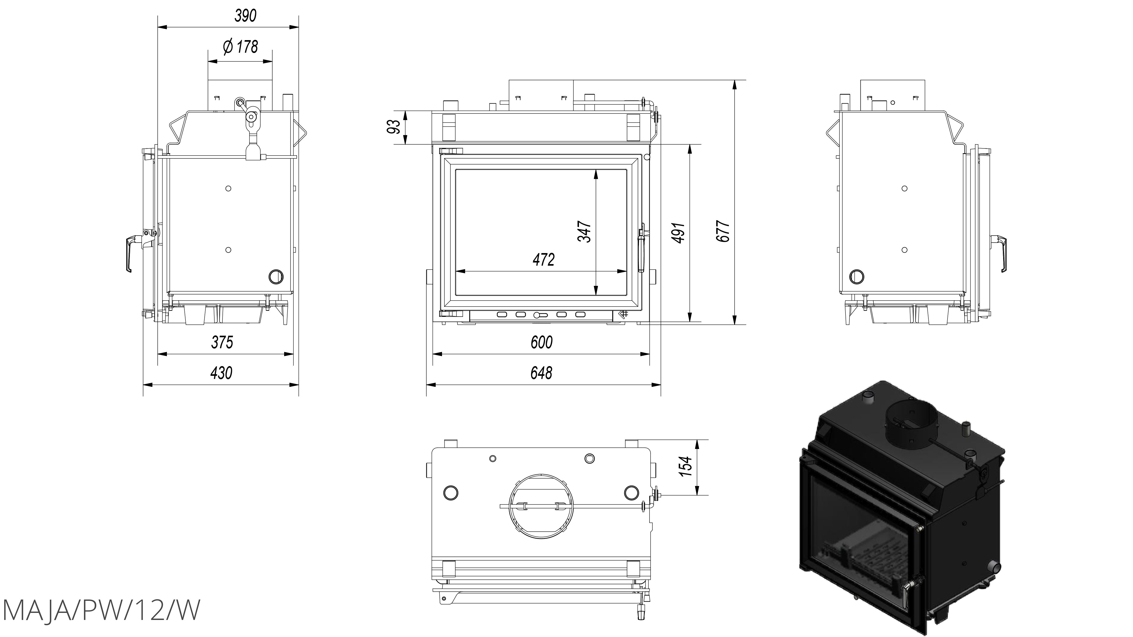Каминная топка с водяным контуром Kratki Maja/PW/12/W, в которой используемые технологии и материалы создают эффективную, экономичную и экологическую топку с высокой эффективностью. Данный прибор предполагает подключение к системе отопления и может использоваться как основной обогреватель или как дополнительный источник тепла.