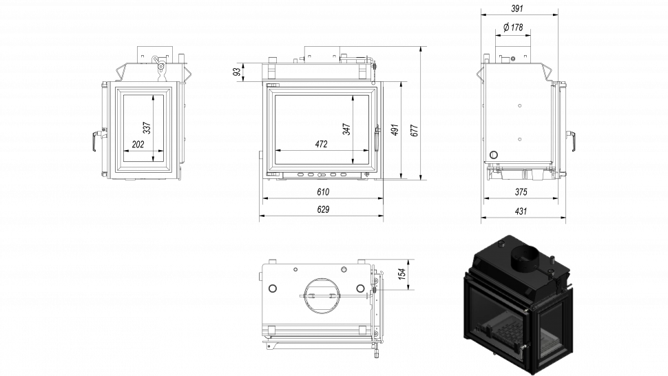 Каминная топка с водяным контуром Kratki Maja/PW/BP/12/W (стекло справа, змеевик). Встраиваемый очаг представленной модели укомплектован медным змеевиком (в других моделях это дополнительная опция), для того чтобы избежать возможности перегрева топки с водяным контуром.