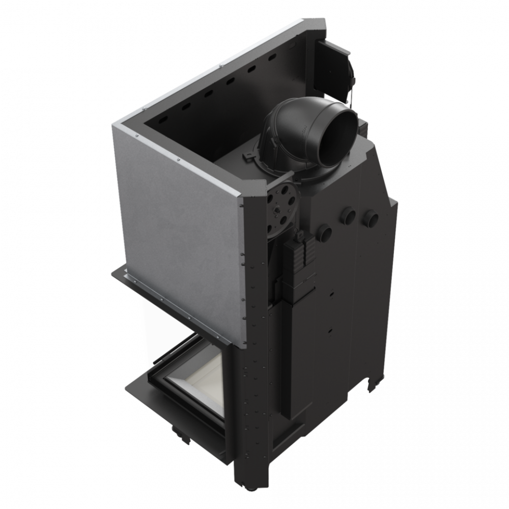 - Тройная система вентиляции камеры сгорания: первичный воздух - направляется на плитку, на которой происходит сгорание; вторичный воздух подается через отверстия в задней стенке. Также в топке применяется система чистого стекла (воздушная завеса).