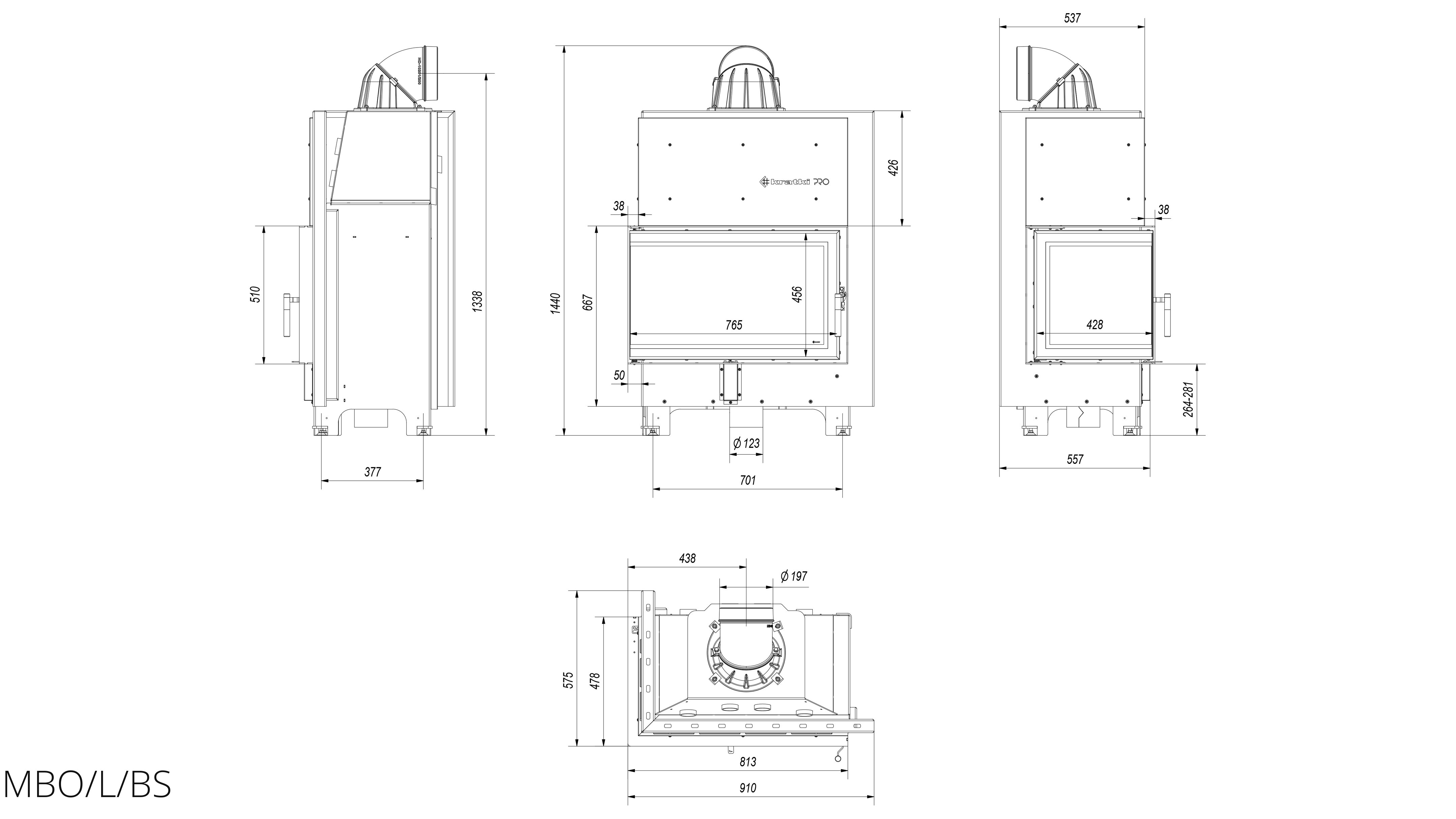 Каминная топка Kratki MBO/L/BS