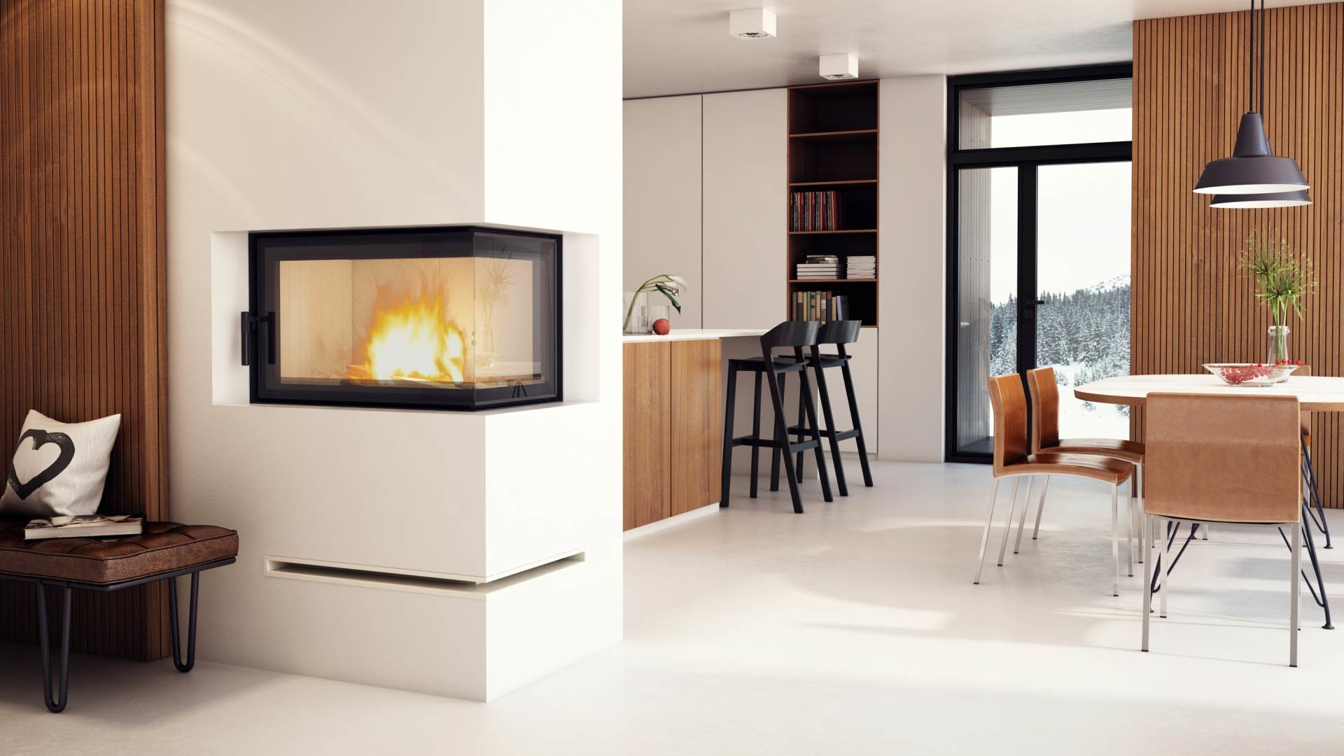 - Декоративная стеклянная панель типа glass, которая выдерживает температуру до 660 °C и предоставляет камину современного и элегантного вида, оптически увеличивает переднюю часть топки.