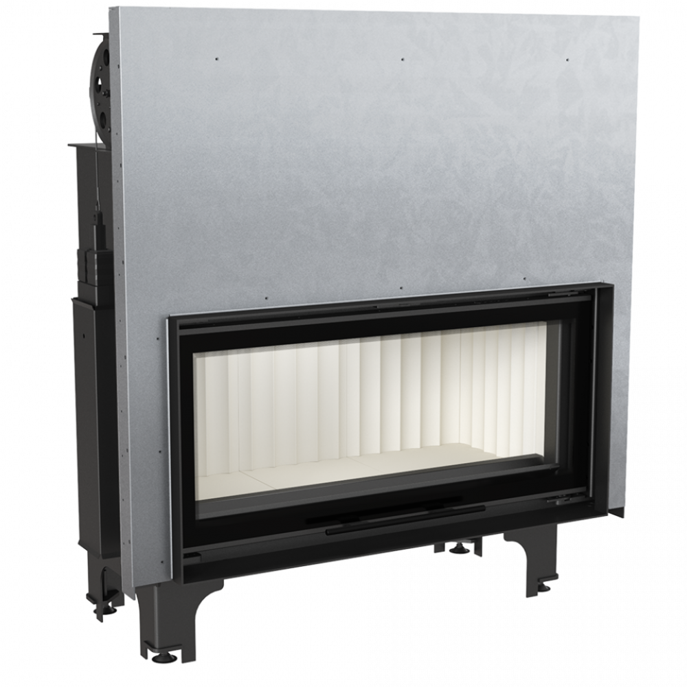 • Декоративная стеклянная панель типа glass, которая выдерживает температуру до 660 °C и предоставляет камину современный и элегантный вид, оптически увеличивает переднюю часть топки.