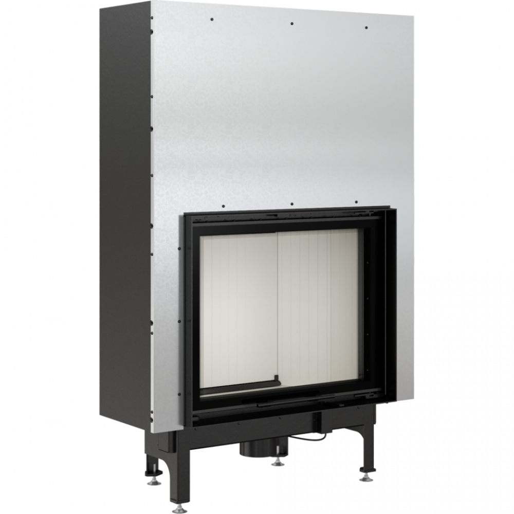 Это стальная топка с широкоформатным фасадом и вертикальным подъемом дверцы. Благодаря качественным материалам, использованным в создании корпуса и камеры сгорания, мы получаем высокоэффективный прибор, способный обогревать пространство до 150 квадратных метров. Прибор работает на экологичном топливе – древесине.